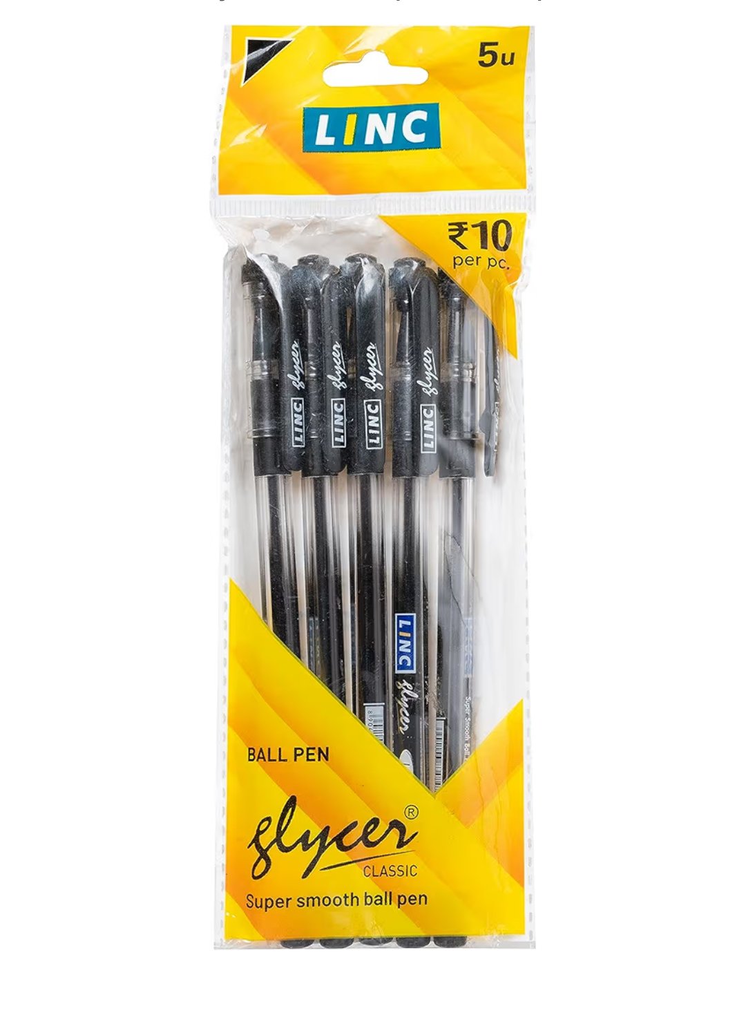 Linc Glycer 0.6mm Black Colour Ball Pen (Pack of 5)